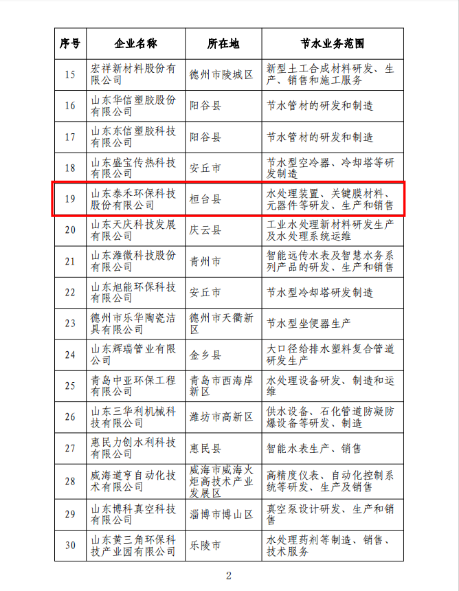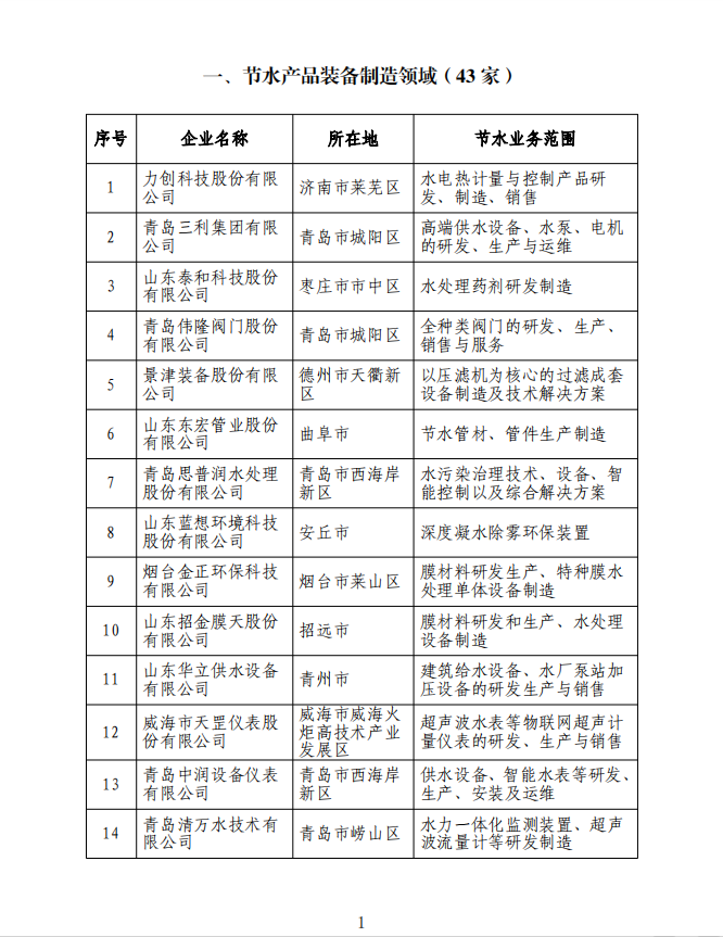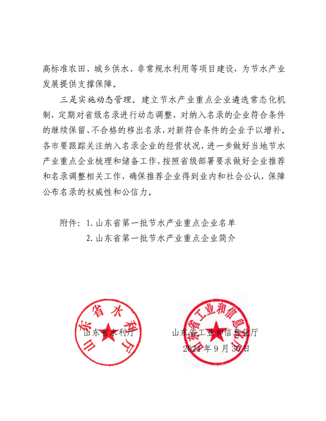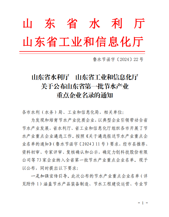 元器件等研發、生產和銷售,成功入選山東省水利廳、工信廳聯合確定的“山東省第一批節水產業重點企業名錄”。